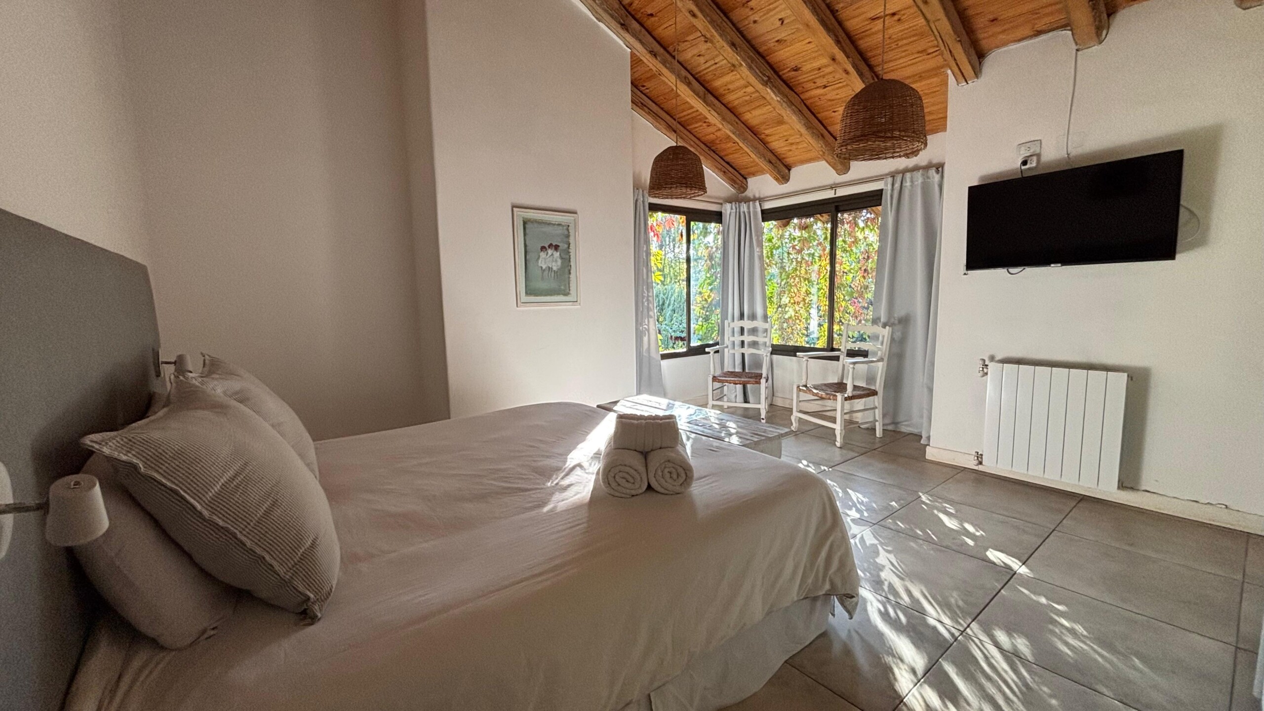 Con 24 m², la Habitación Ceibo es un espacio cómodo y acogedor, ubicada en planta alta, ideal para una estadía tranquila. Dispone de baño privado con artículos de aseo de cortesía, toallas y ropa de cama de calidad.