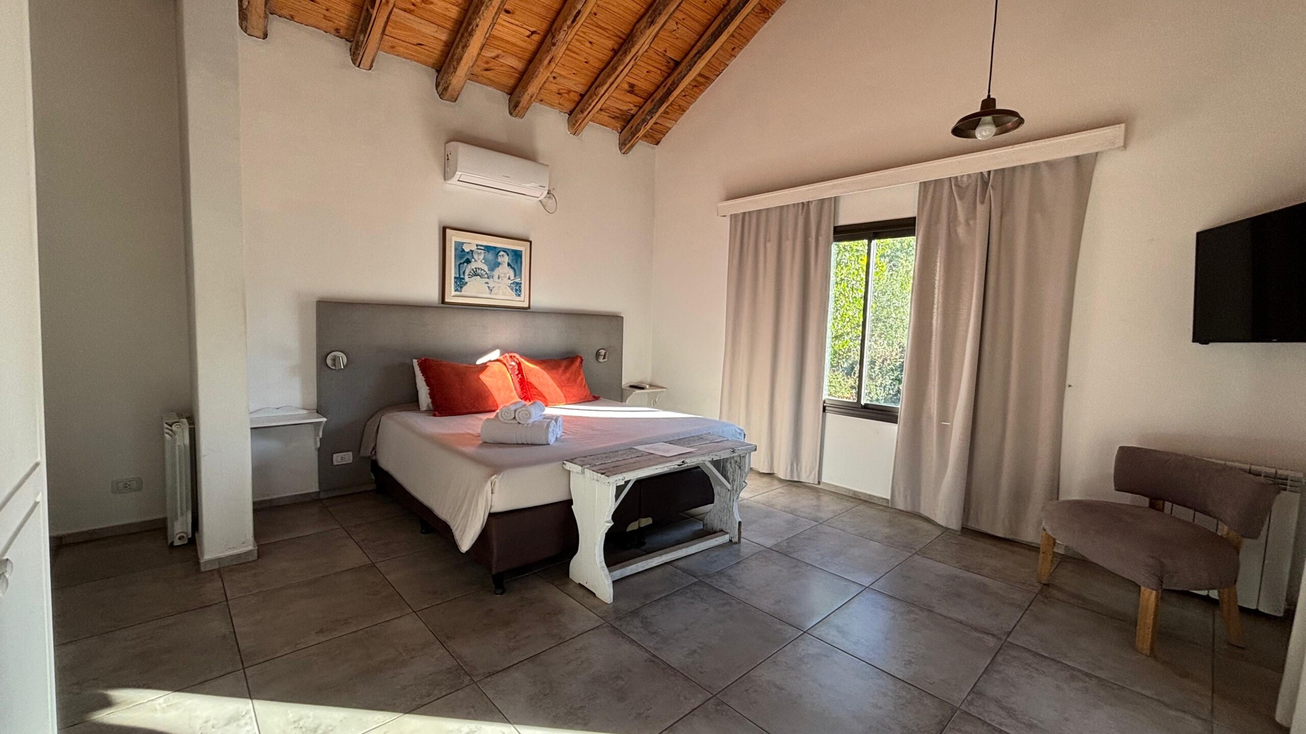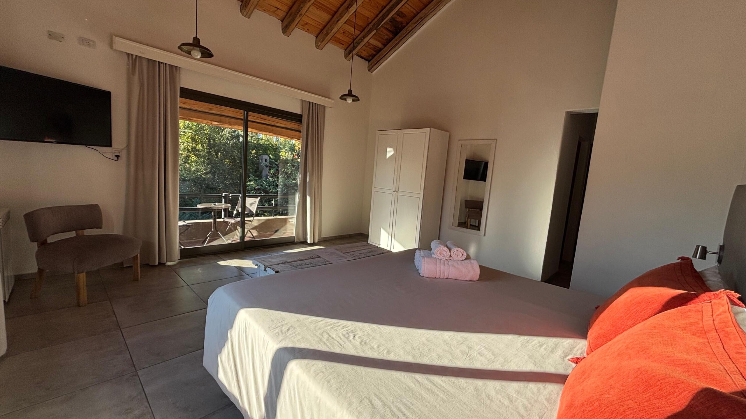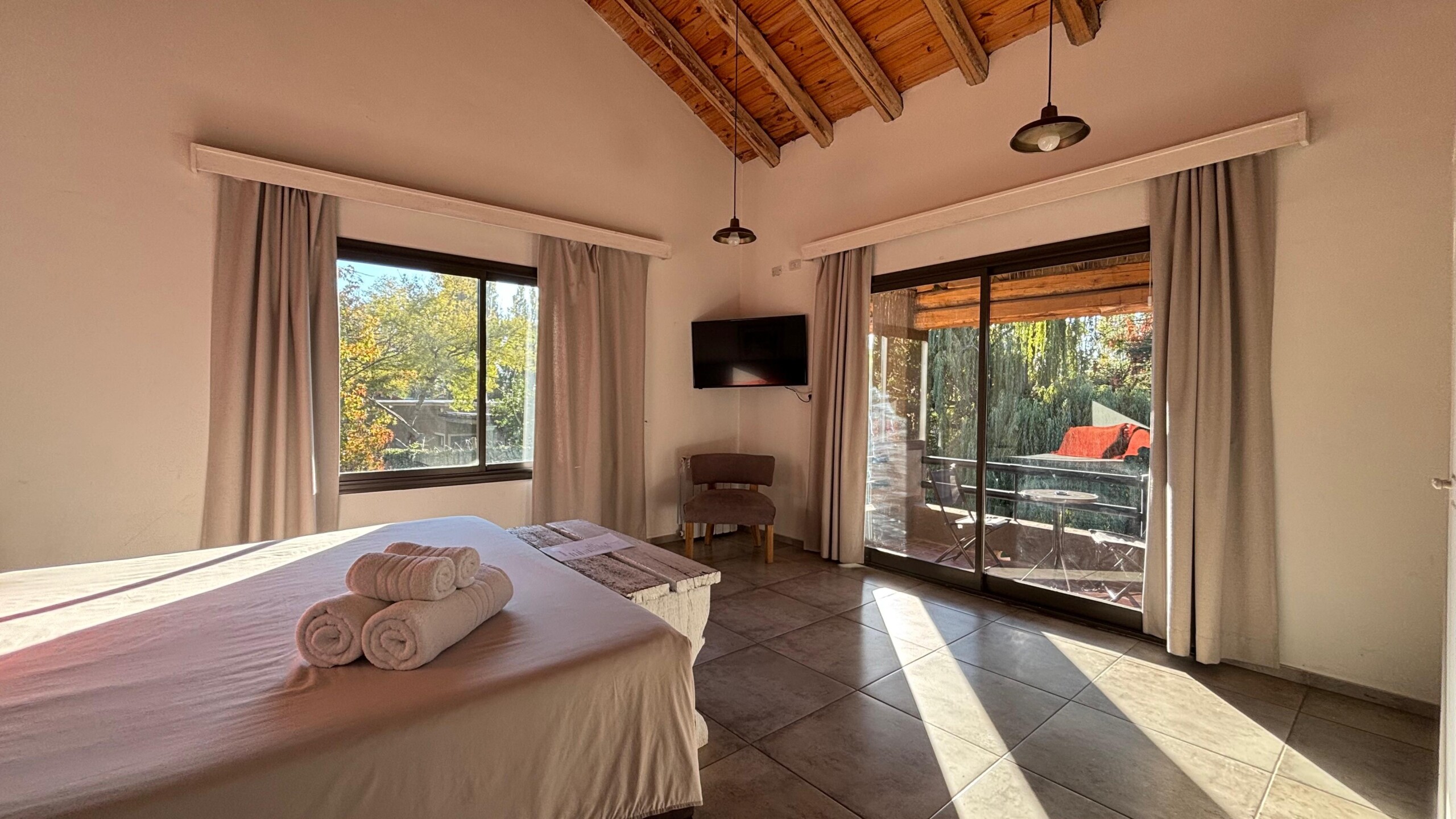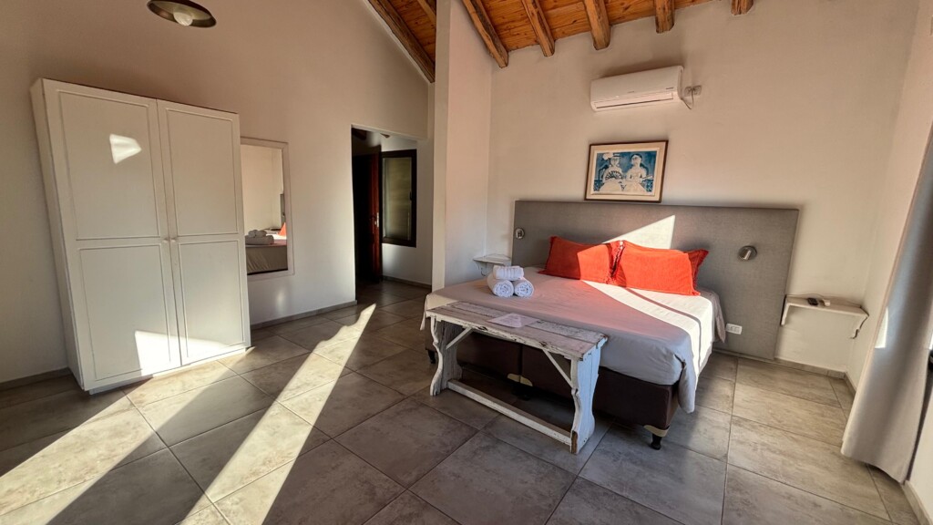 Con 24 m², la Suite Ciprés es un espacio cómodo y luminoso, ubicada en planta alta, ideal para una estadía tranquila. Cuenta con balcón y posibilidad de elegir entre cama matrimonial o dos camas individuales. Dispone de baño privado con artículos de aseo de cortesía, toallas y ropa de cama de calidad.